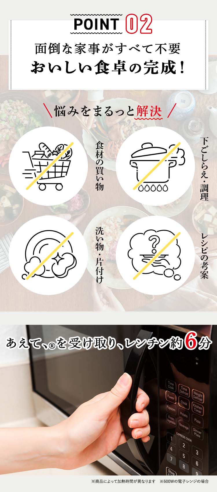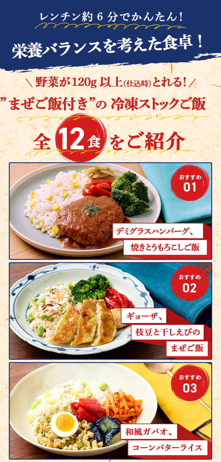 ●定期お届けサービスの各回のお支払合計:「12食コース:1回目7,740円(税込)、2回目以降10,236円(税込)+送料…定期お届けサービスを継続された場合のお支払い総額(累計)の目安は税込金額として「12食コース:1回分7,740円+送料無料(当社負担)、2回分17,976円+990円(送料) 、12回分120,336円+ 10,890円(送料) …」となります。」※送料はお届け地域によって異なります。