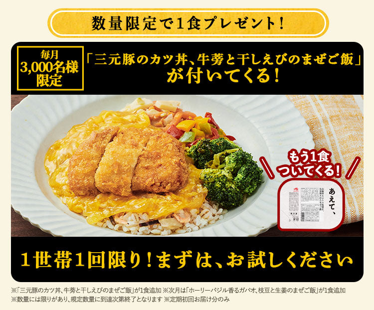 ●初回配達日は注文時にご指定いただいた配送希望日、2回目以降は1回目の配送日から選択いただいた定期プランのお届け間隔(1週間、2週間、3週間、4週間)ごとにお届けします。詳細はマイページにてご確認ください。 ※一部キャンペーン・特別プランの条件によって異なる場合がございます。 ※発送はクロネコヤマトのクール便(冷凍)でお届けします。商品の特性上、宅配ボックスなどでの受け取りはできません。一部配送ができない地域がございます。